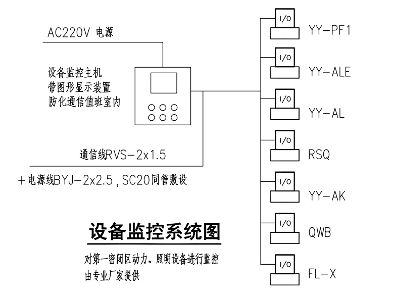 l 参考人防战时动力、照明负荷集中监控示意图,JKZJ型防化值班室集中监控主机到各个动力箱、照明箱采之间的通讯方式,确定需要监控的战时动力箱、照明箱的个数,安装方式要求是落地式还是壁挂式。